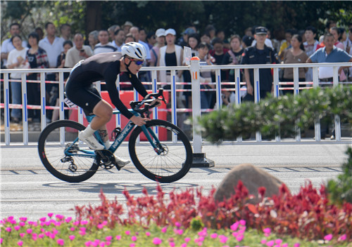 本站比赛,110多名选手个个尽情发挥自己的绝佳骑技。虽然每位选手相隔一分种发车,但在一圈的竞速中,相互超车的情景时有发生,给比赛增添了不少激情和悬念。按照规定,骑行一圈用时最短的选手可坐上终点设置的第一名席。但一百多名队员的成绩随时都在变化,终点第一名席的更替非常频繁,有的选手还没坐热席位就被替换了,给观众带来激情之外,又增加了几分乐趣。